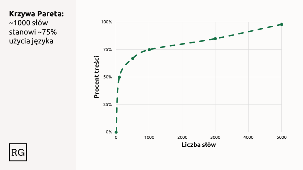Popularna teza mówiąca o tym, że określona liczba słów (najczęściej podawany jest tysiąc) wystarczy, aby porozumiewać się w języku obcym ma swoje uzasadnienie w teorii włoskiego ekonomisty, Vilfredo Pareto. Na początku XX wieku Pareto zauważył, że 80% ludności Włoch zamieszkuje 20% terytorium tego kraju.