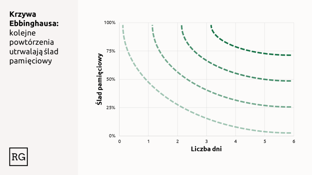 - Po zakończeniu nauki następuje szybki spadek ilości zapamiętanych informacji.